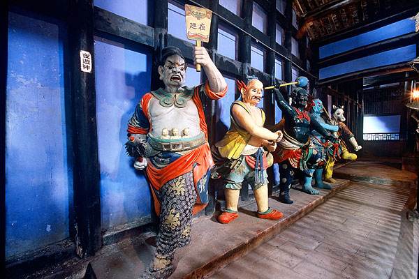 鬼城景區(qū)內(nèi),“夜游神巡夜”塑像栩栩如生。
